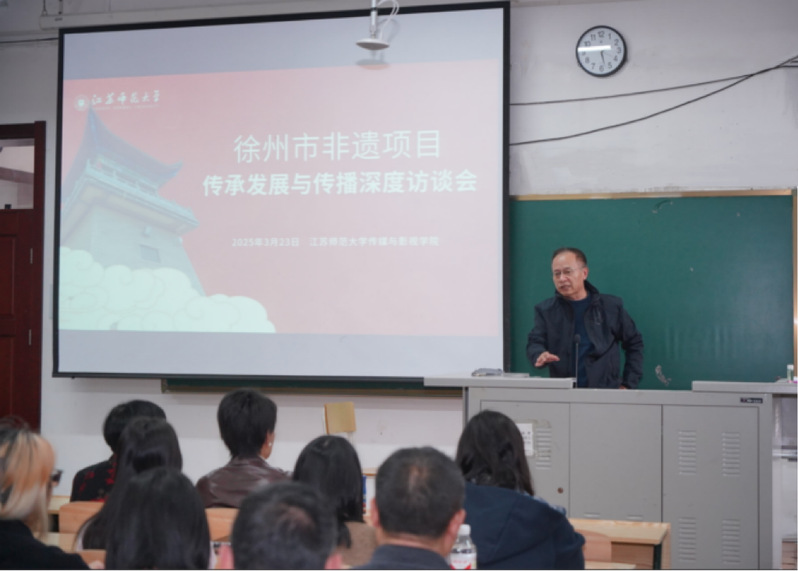 3月23日,徐州市文化广电和旅游局非遗处处长朱泓、副处长邱银波携18位非遗传承人走进传媒与影视学院广告学专业省一流课程《广告业务运作实践》的课堂,与00后大学生展开创意碰撞。传媒与影视学院党委书记杜昀、院长孟宪浦和专业相关老师参加活动。课程主讲人、国家级一流本科广告学专业带头人樊传果教授现场展示了课程创新实践的部分成果并做了《徐州市非物质文化遗产项目调研、传播策划与创意设计》的主题报告,详细介绍了课程中“徐州市非遗项目”业务实践的具体内容。《广告业务运作实践》省级一流课堂上,非遗大师们不再是传统意义上的文化展演者,而是以“创新创业导师”身份深度参与课程设计和实践教学。院长孟宪浦教授对将人才培养、课程建设、社会服务、实践教学等紧密融为一体的教学方式给予高度评价,并指出学院正着力打造以需求为导向的“政产学研”协同育人体系,逐步形成“课程教学+社会服务+课题研究+项目孵化”的产教融合新机制。徐州市文广旅局非遗处朱泓处长高度评价此类教学模式,相信依托国家级一流本科专业的办学优势一定会产生一批有转化应用价值的实践成果。他还表示,非遗处今后也将从各个层面给予大力支持。这场由传媒与影视学院与徐州市文广旅局联合打造的“非遗双师课堂”是贯彻习近平总书记“两个结合”理论特别是“第二个结合”重要思想的呈现。在活动现场,学院领导与非遗处领导就进一步合作进入深入交流。双方表示愿意进一步围绕徐州市非遗保护与传承发展、文化产业品牌建设与传播等项目推进产教深度融合,共建协同育人与非遗传播新平台,助力双方高质量发展。(一审:刘俊冉,二审:孟宪浦,三审:杜昀)