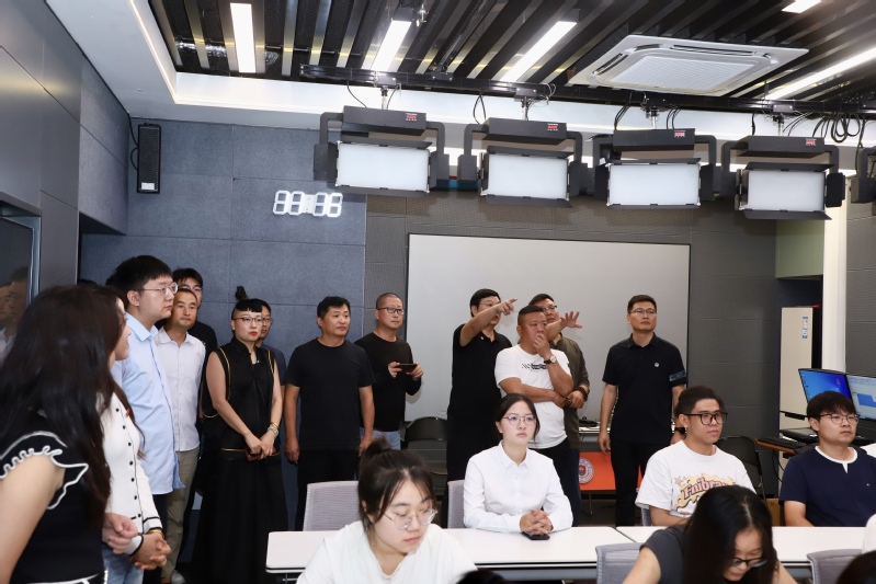 9月11日,徐州市新媒体协会、徐州九段数字科技有限公司以及抖音亿级服饰品牌“凤徕兮”等单位应邀来院开展产教融合合作交流。会议围绕网络直播人才的思想引领、论坛筹办如苏鲁豫皖交界区网络达人论坛以及培训领域合作如微综艺直播和 “数商助农”乡村基层传媒能力培训、竞赛活动筹办等合作方向进行了深入探讨。院长孟宪浦、院党委书记韩洪政及相关工作人员出席座谈。座谈会后,孟宪浦等人陪同专家团队实地参观了爱师大智慧研创中心、精品视频资源录制室,以及学院的直播间、灯光室、演播厅等教学实训设施。参观过程中,双方就实训场景的数字化升级与未来建设方向进一步交换了意见。(一审:张陈杰,二审:孟宪浦,三审:韩洪政)