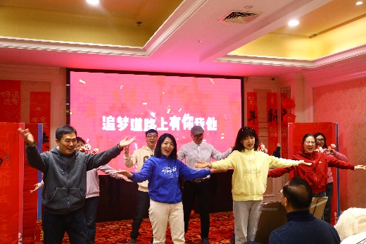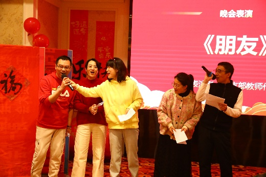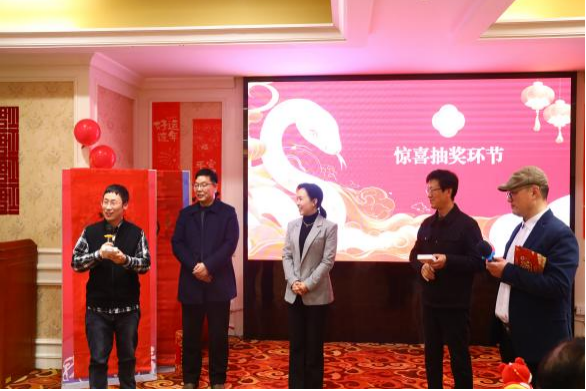 祥蛇昂首,瑞启新岁。1月11日下午,传媒与影视学院举办了一场以“顺颂时祺 秋绥冬禧”为主题的新春团拜会,四十余名全体教职工欢聚一堂,共度温馨时刻。各教工党支部组织了丰富多彩的节目,行政实验支部创编的《传媒三句半》获得现场的阵阵笑声和掌声;广告系支部自创歌舞表演《敬业阵线联盟》,用幽默欢快的歌词表达了对工作的投入和对学院发展的祝福;新闻系支部合唱的《当》用独特的媒介记忆唤起在场人员的青春回忆;广播电视艺术系支部带来的器乐表演《上春山》和独唱《我是一棵秋天的树》展现了老师们多才多艺的闪光点;各支部教师代表小组合深情合唱的一曲《朋友》,唱出了传媒学院深厚的同事情谊。一个个精彩的节目充分展现了学院教职工们的艺术风采和团队凝聚力。节目期间穿插了“爱你在心口难开”“传话不走样”等热门游戏以及惊喜抽奖环节,更是让现场气氛热烈浓厚,欢声笑语时时萦绕。最后,学院全体教职工一起包饺子、挂春联、写贺卡,为彼此送上真挚的新年祝福。现场气氛热烈而融洽,团拜会在和谐愉快的氛围中圆满落幕。 (一审:鹿璐;二审:张存钊;三审:杜昀)